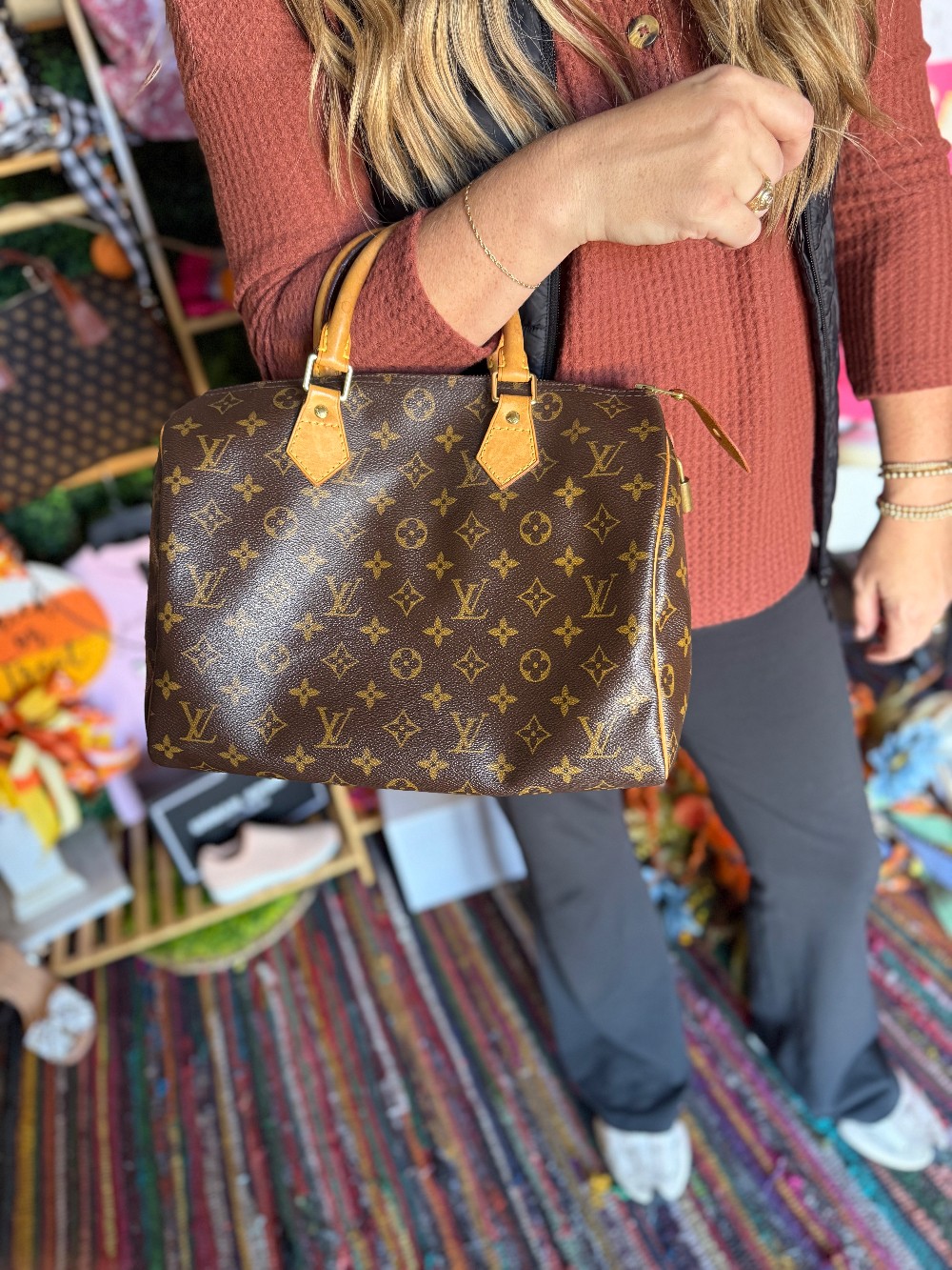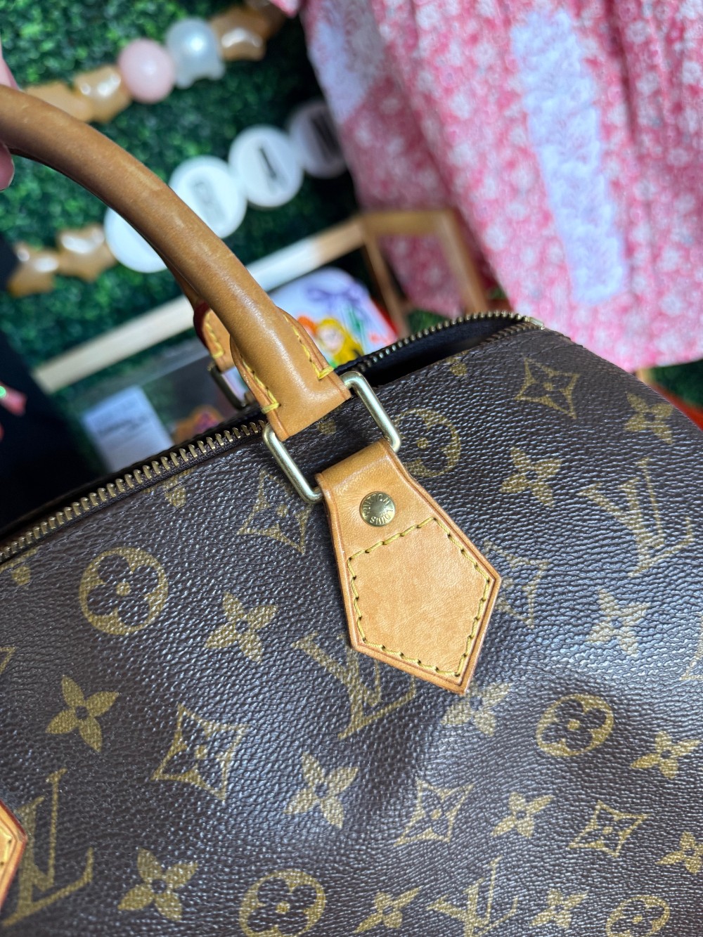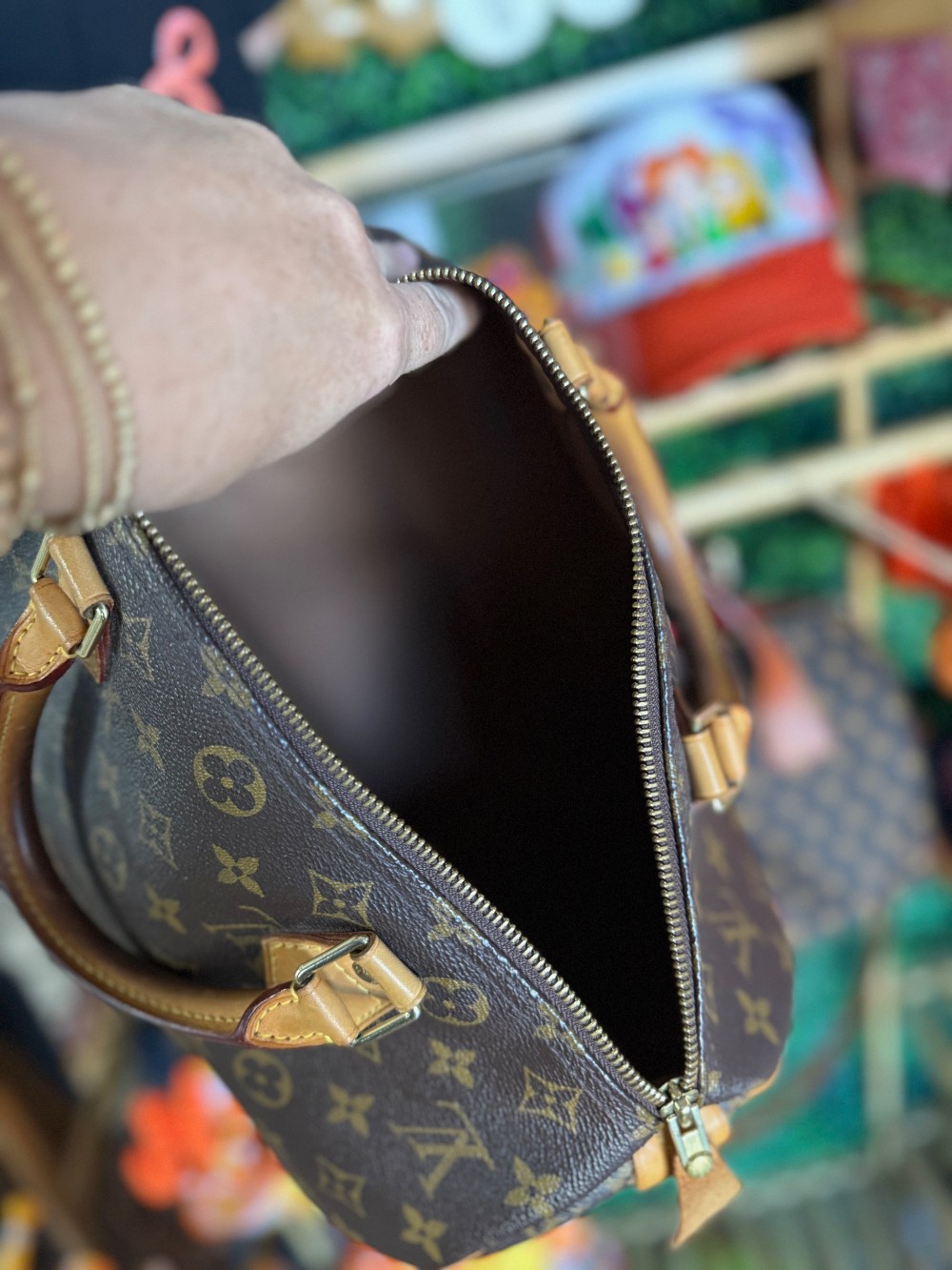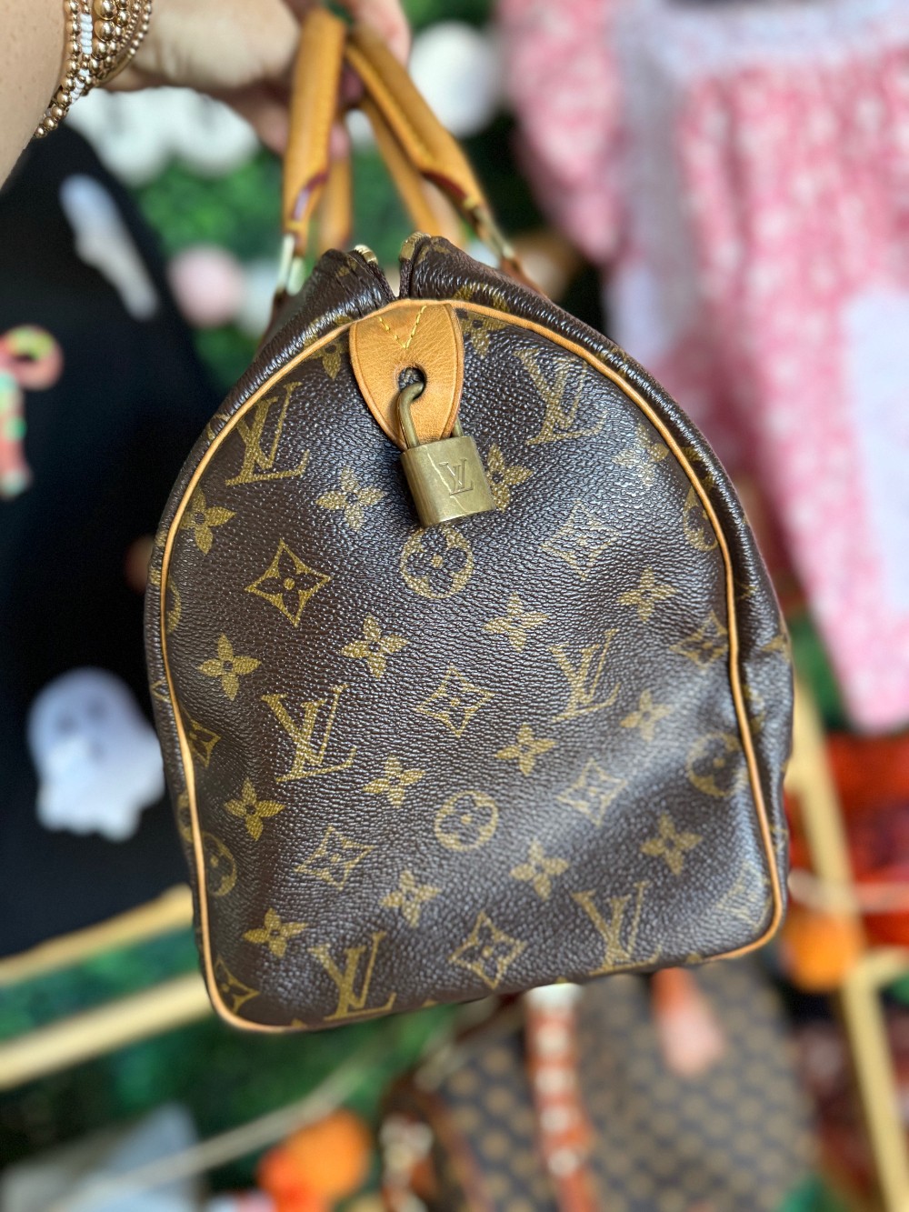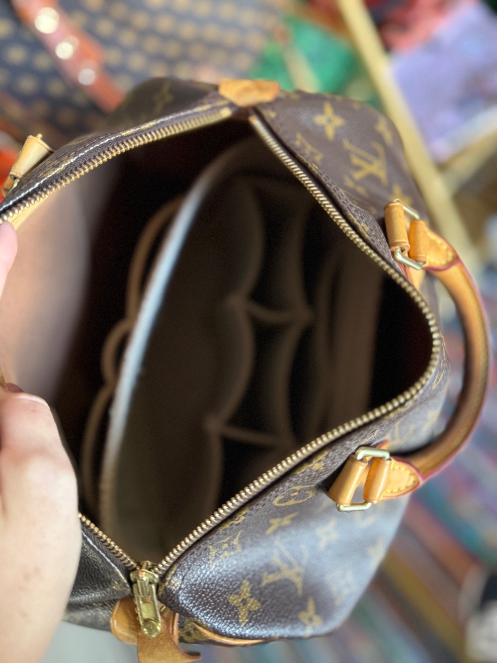 This classic Louis Vuitton bag is in excellent shape. The Speedy comes with a felt organizer to keep your items straight and help the bag keep its shape. This Speedy comes with its signature lock attached to the side.