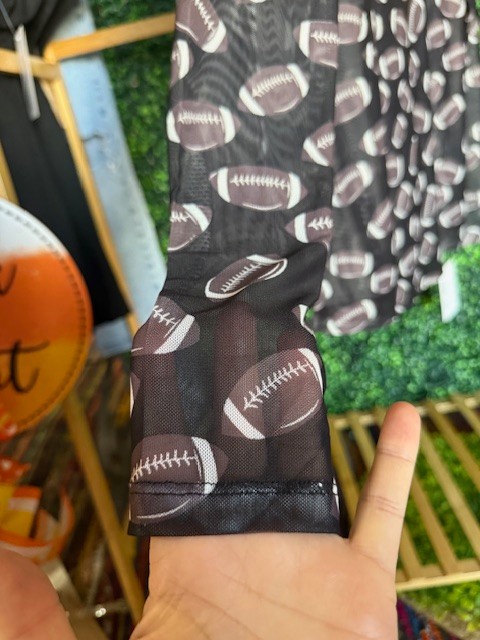 Score a touchdown with your gameday outfit! This black mesh mock-neck top has a stretchy fit. Wear on top of a black tank or layer under an oversized t-shirt.