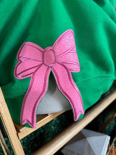 This sweatshirt is so dang cute, y'all. The chenille patch is gorgeous, but the bow details make it an instant "add to cart" moment!
