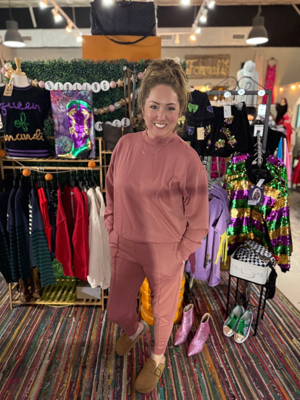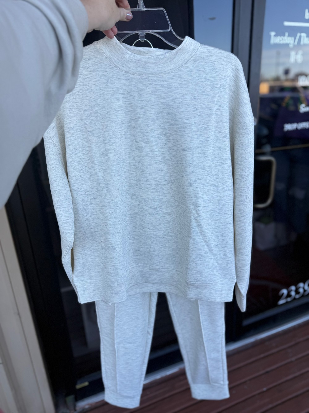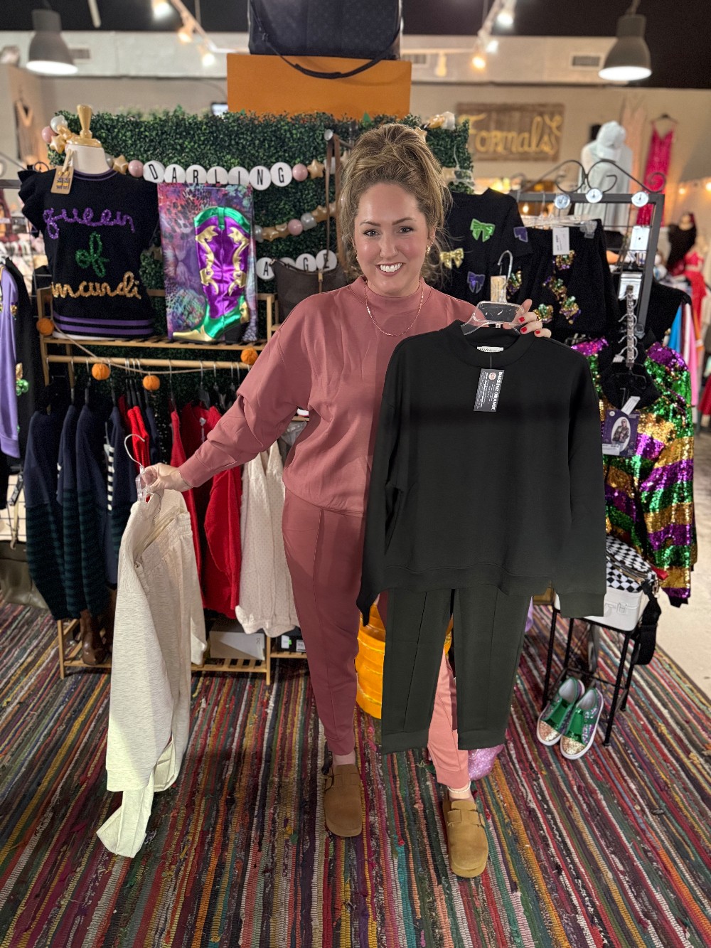We are loving this jogger set! Pair with your favorite pair of sneakers, throw on a jean jacket, and you’re ready to go.